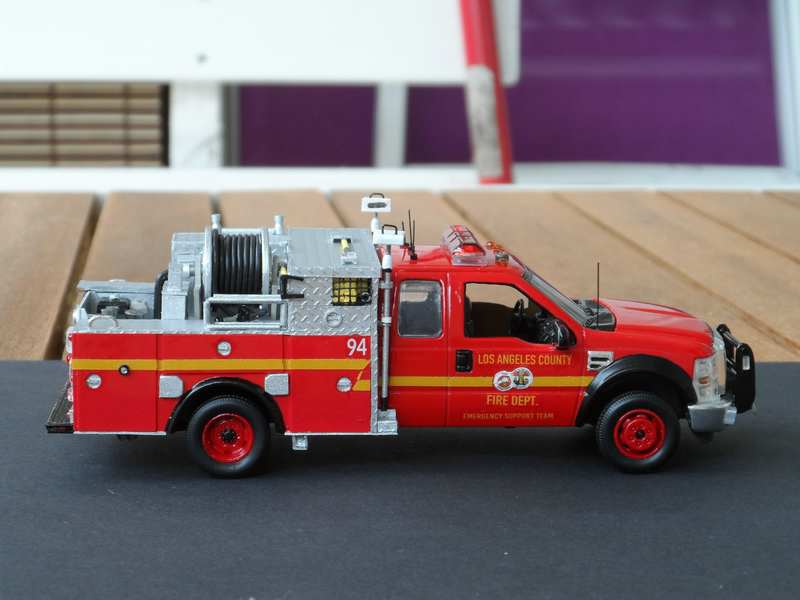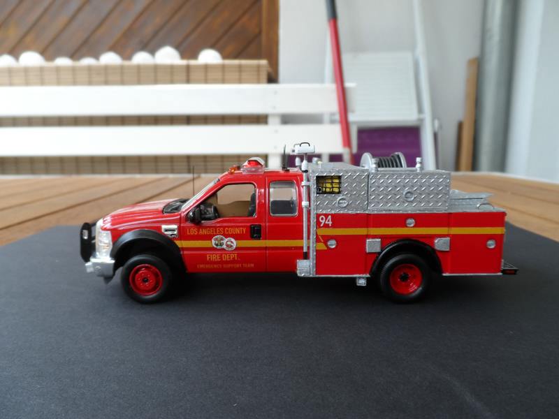 Das Modell stellt die "Brush/Fire Patrol" EST Unit 94 des Los Angeles County Fire Department dar. EST steht hierbei für "Emergenc Support Team" , also eine Unterstützungseinheit, die vor allem bei der Bekämpfung, der häufigen Busch Brände zum Einsatz kommt.