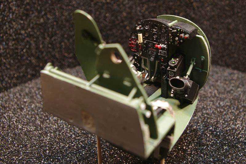 Als erstes wurden sämtliche Auswurfsmarken und unebenheiten im Rumpf beseitigt, und dann Lackiert. Normallerweise wäre dies bei einem normalen Bau nicht notwendig da man eh keinen Einblick hat.
