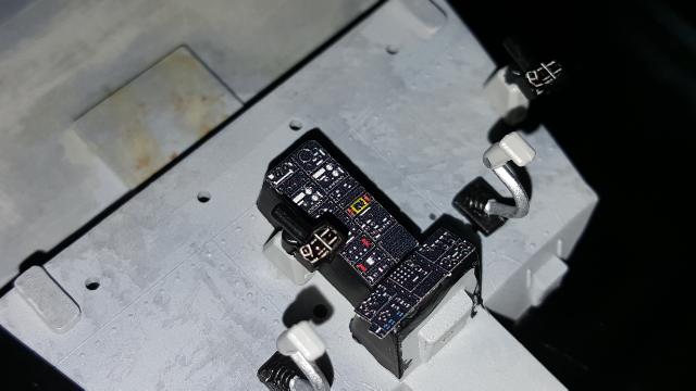 Ich habe das Panel weiß grundiert, danach Revell blau 56 für die Displays. Diese habe ich mit tamiya habe abgeklebt und danach das Panel mit Revell Schwarz 302 gebrusht .