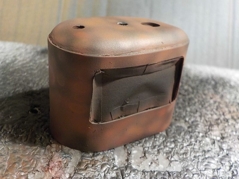 Des weitern wurden die Schweißnähte mit VallejoAcryl aufgebracht…wichtig: vorher unbedingt anschleifen… Acryl drauf …. mit Spachtel abziehen…. und das Tape sofort vor dem Trocknen entfernen….sonst kommt das dünne Teil wieder mit ab ... (mehrmals passiert!!)