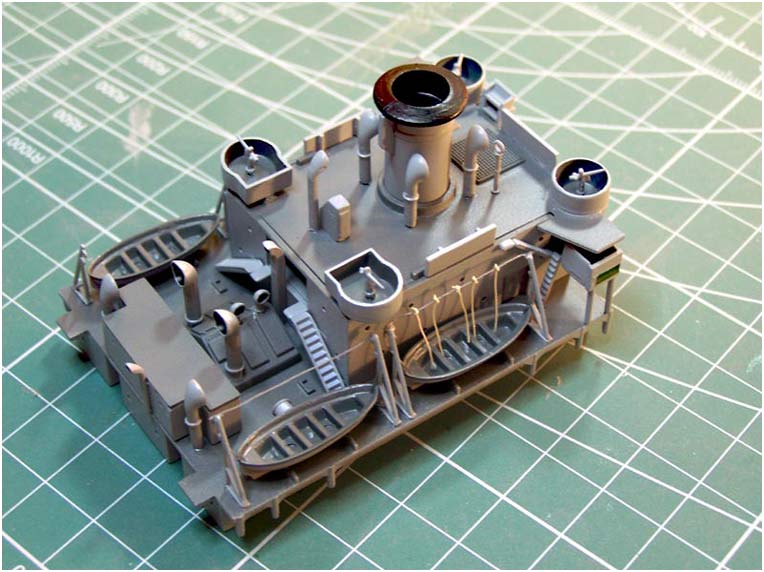 Jetzt fehlen noch ein paar kleinere Deckshäuser an Bug und Heck,