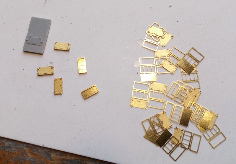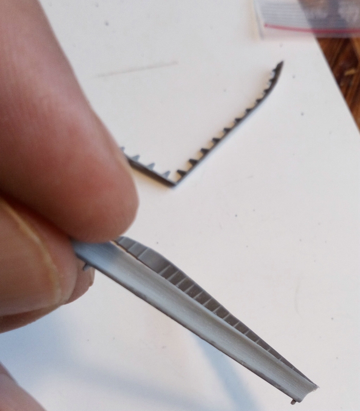 Aus solchen Ätzis werden die neuen Teile zusammengebaut, nachdem die Wand in Form gebogen wurde, werden in die Schlitze Bleche von 0,8 x 4mm eingesetzt, und davon ganz viele...
