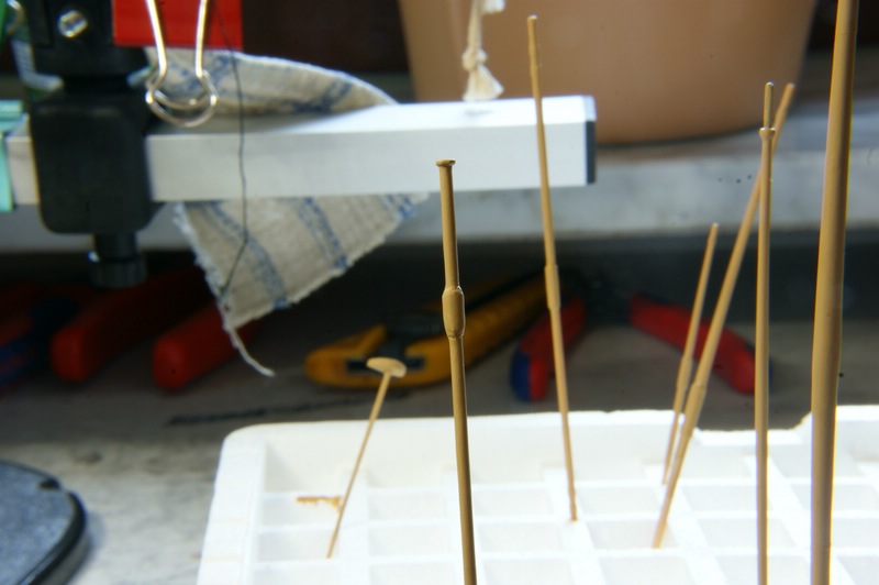 Also werde ich das ganze Teil abbauen, Wanten, Pardunen und das Stag, und aus einem Messingrohr eine neue Stenge bauen, mal sehen wie mir das von der Hand geht, ich werde berichten.
