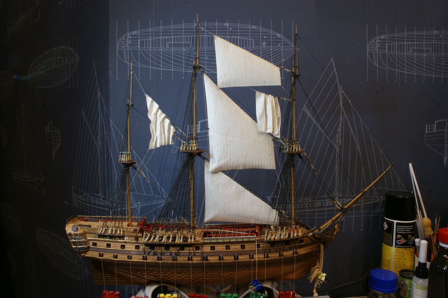 Nach dem Modell ist vor dem Modell: USS Constitution 1:96 von Revell, in Warteposition.