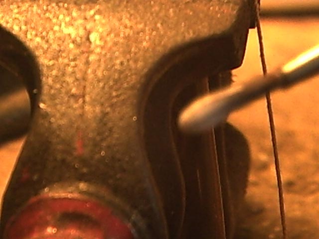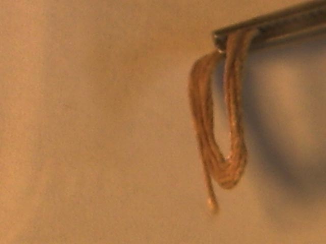 Hier habe ich eine Klemmpinzette an das Schot gehängt: