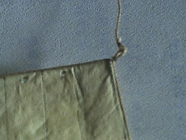 Das Segel hängt nun an der Rah und nun wird das Kopfliek mit Anschlagbändseln aus Nähgarn am Jackstag festgemacht.