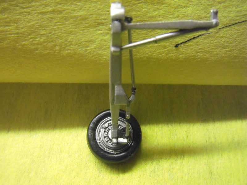 Die Bremsleitung mit Befestigungsklammer am Hauptfahrwerk ist fertig. :bang: Schöne Arbeit :verrückt: .Es wurde 0,2mm Draht geholt denn Grau eingefärbt-Bremsleitung,0,2mm Draht blatt gedrückt und schwarz eingefärbt-Befestigungsklammer....