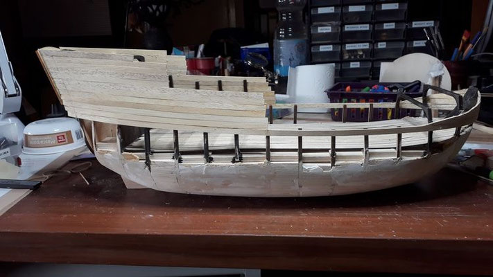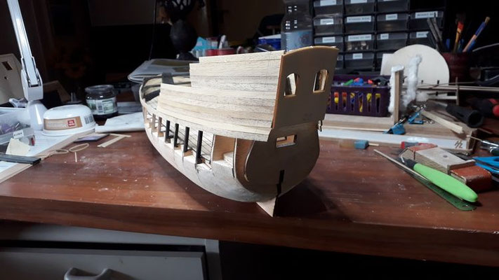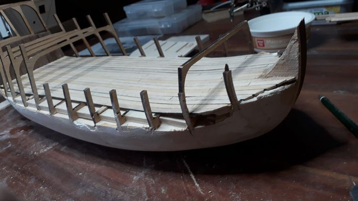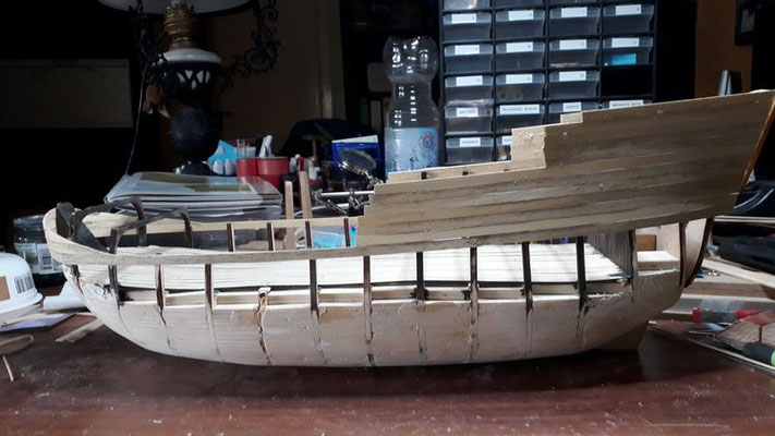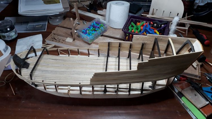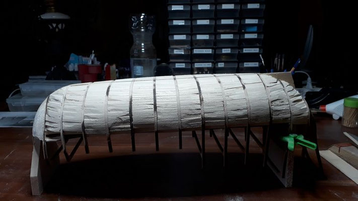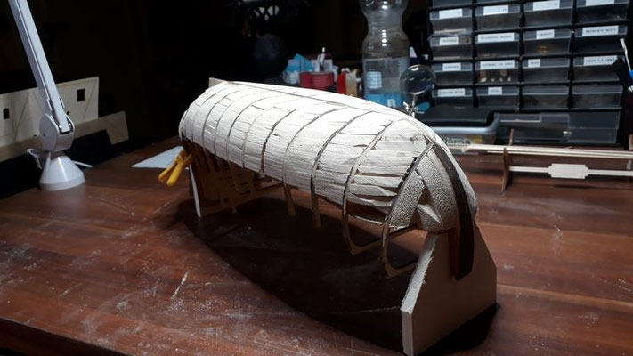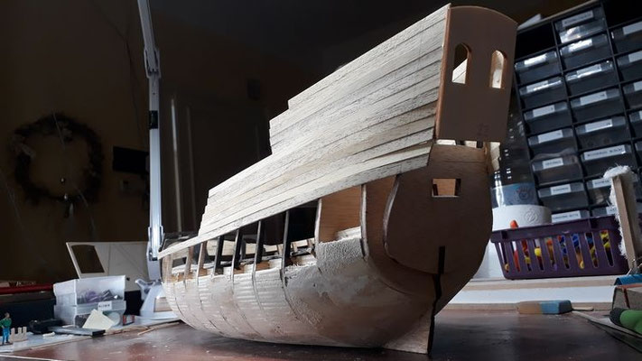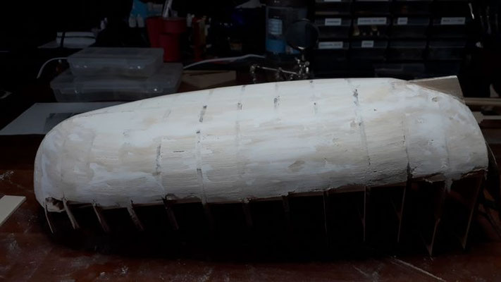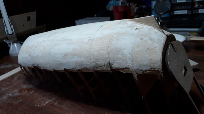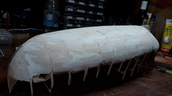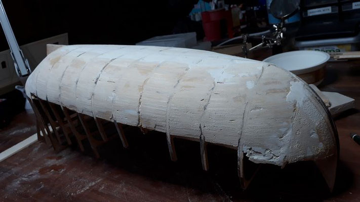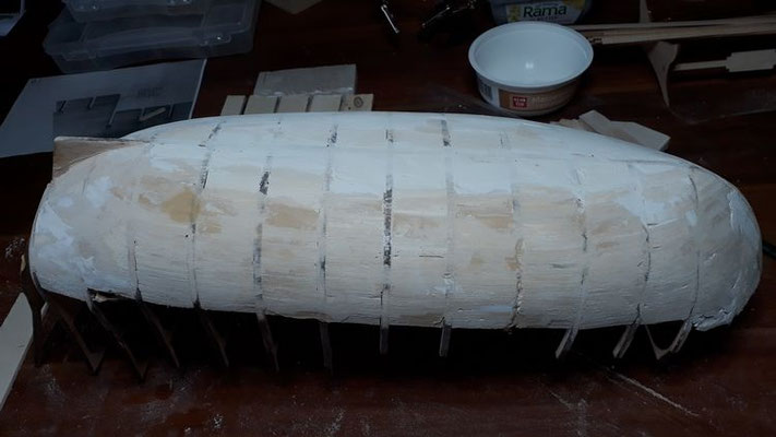 Du musst bei der Erstbeplankung gut darauf achten, dass die Planken nicht einer Delle folgen, dann kannst Du dir die weitere Schleifarbeit sparen, ist aber nur meine Meinung.