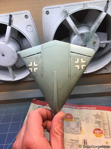Beim lackieren ist vor den Lüftern noch ein Fließ und in der Abzugshaube auch.