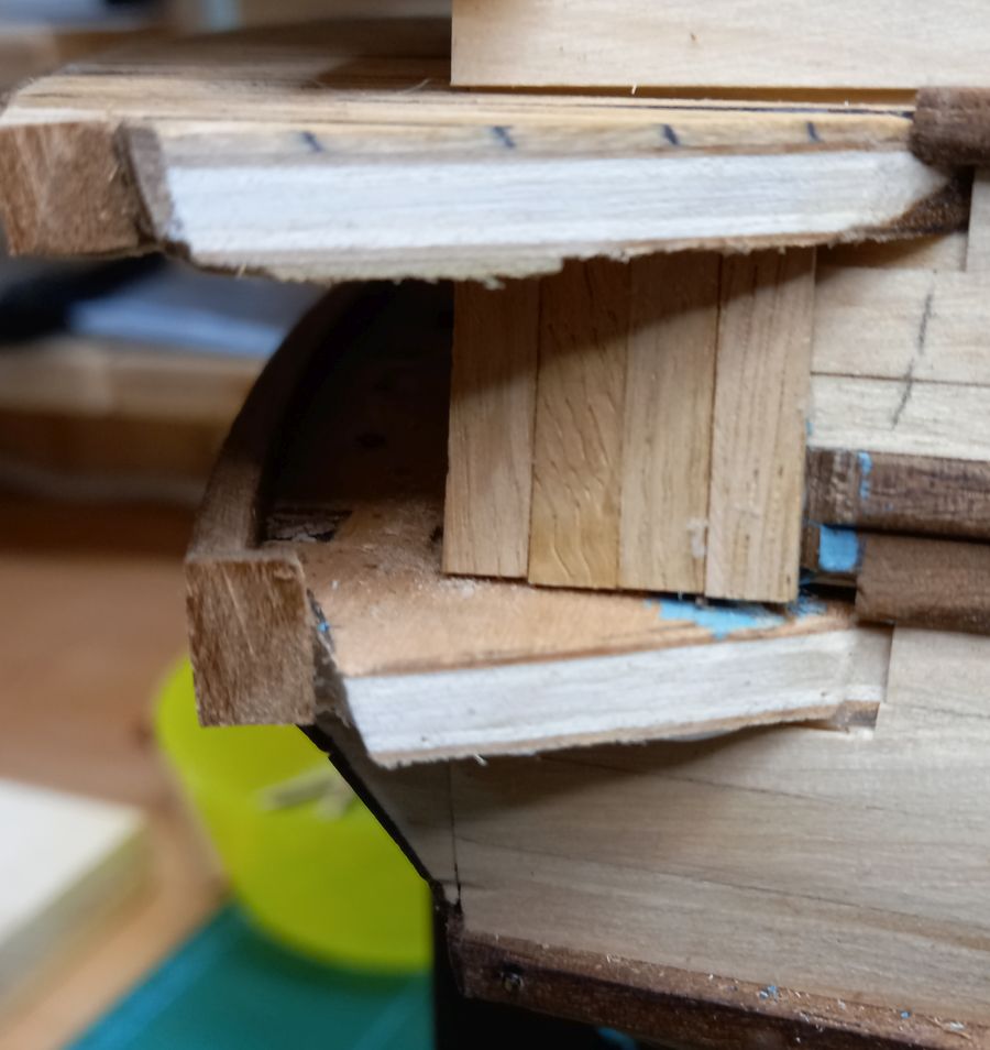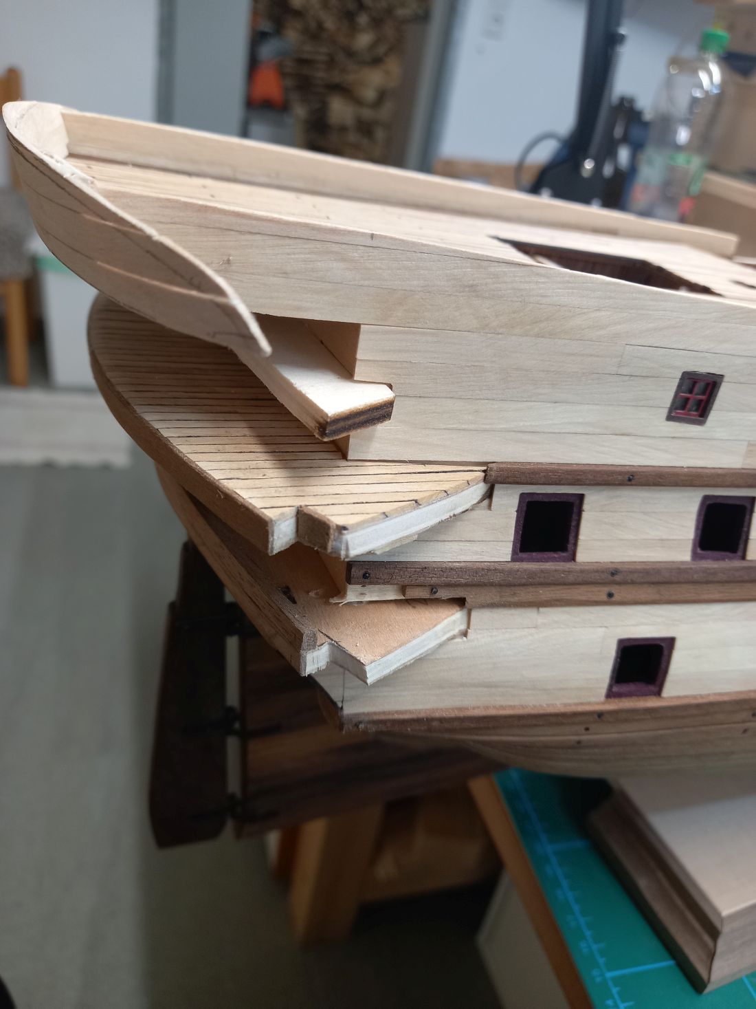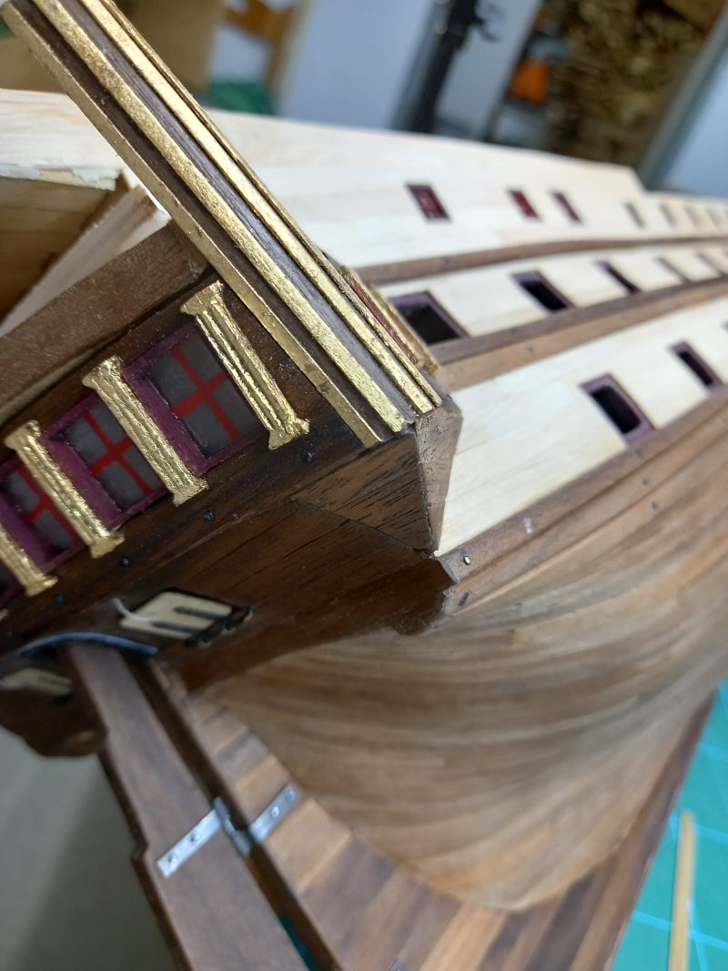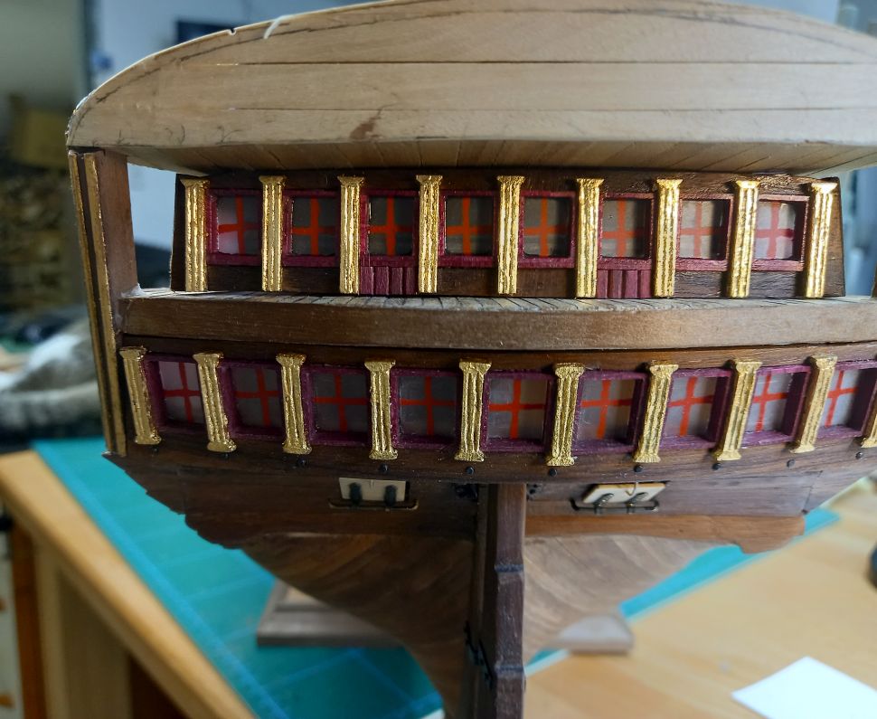 habe jetzt das Geländer am Heck fertiggestellt und noch einige Zierleisten angebracht