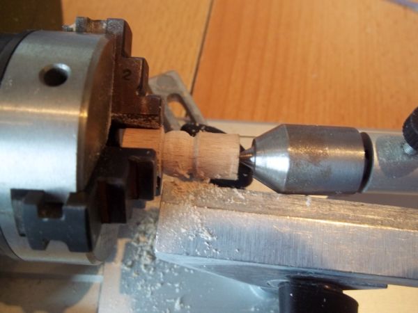 Ein fuß für das teil.zack rums drechselbank raus,holz eingespannt und los gehts.