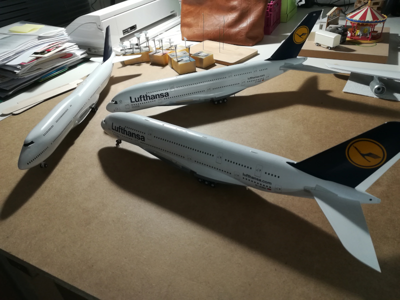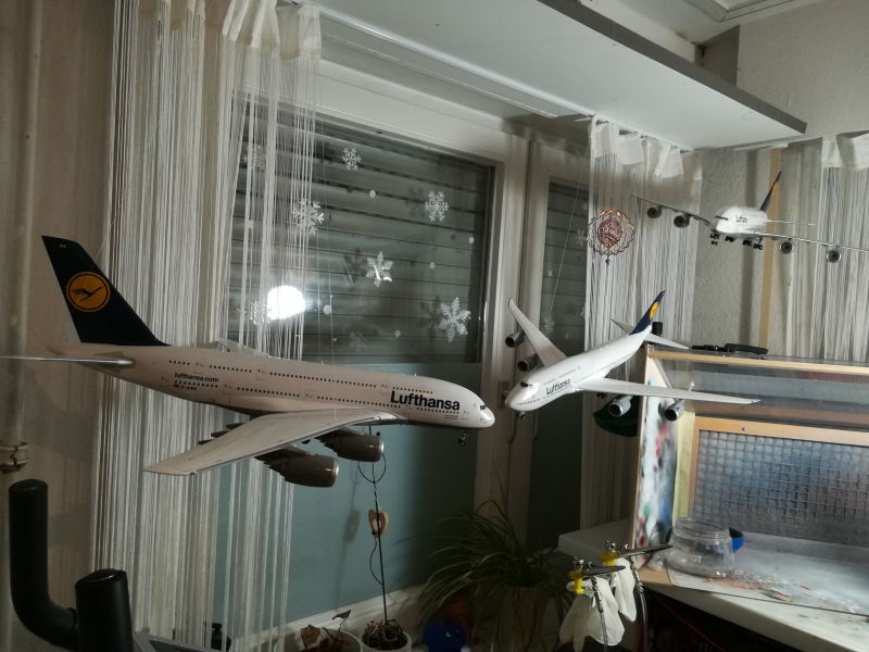 Ja, da geb ich jedem einzelnen Recht Warum fang ich gleich zwei Airbus A380 und dann noch ne Boeing 747 im Maßstab 1:144 an? Ganz einfach. Das Vorhaben startete Ende November vergangenen Jahres weil ein Airbus als Geburtstagsgeschenk gedacht war. Daher hat es auch vorab keinen Baubericht gegeben. Der besagte Geburtstag ist rum, daher kann ich für den Endspurt nun auch einen Baubericht mit Rückblick starten, denn der Airbus ist zwar noch nicht fertig, aber Grund war nicht, dass ich zu viel auf dem Tisch hatte, sondern absolut Probleme mit der weißen Farbe hatte bis ich heute meine Lösung gefunden habe.