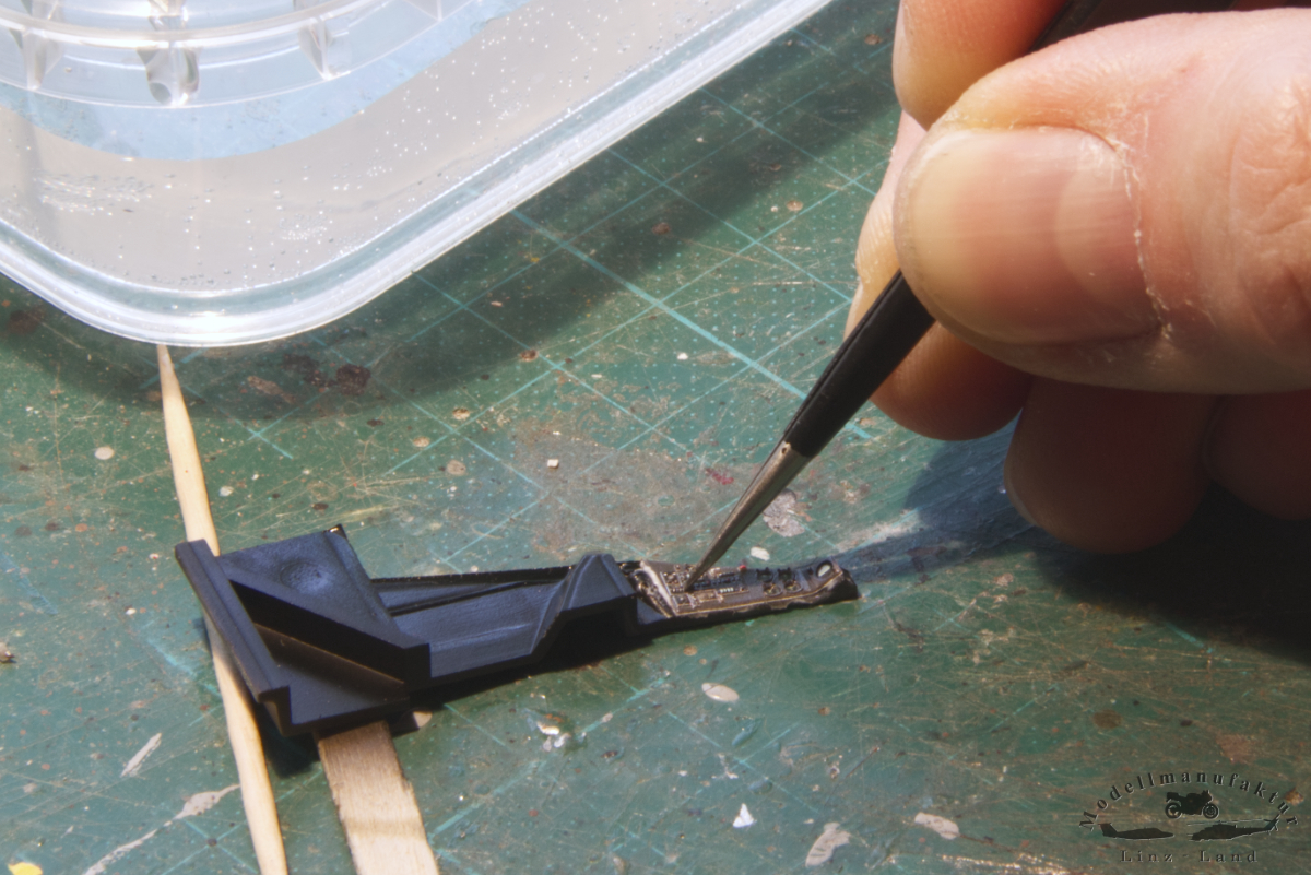 Das sind die "Kleinigkeiten" die schon angesprochen wurden und ein Modell extrem aufwertenZwischen Cockpit und Kabine habe ich einen Streifen Sheet verklebt, hier ist im Original eine sehr auffällige Aufdopplung. Wird noch dünner geschliffen und anschließend, wie auch der restliche Rumpf, mit Nieten versehen.