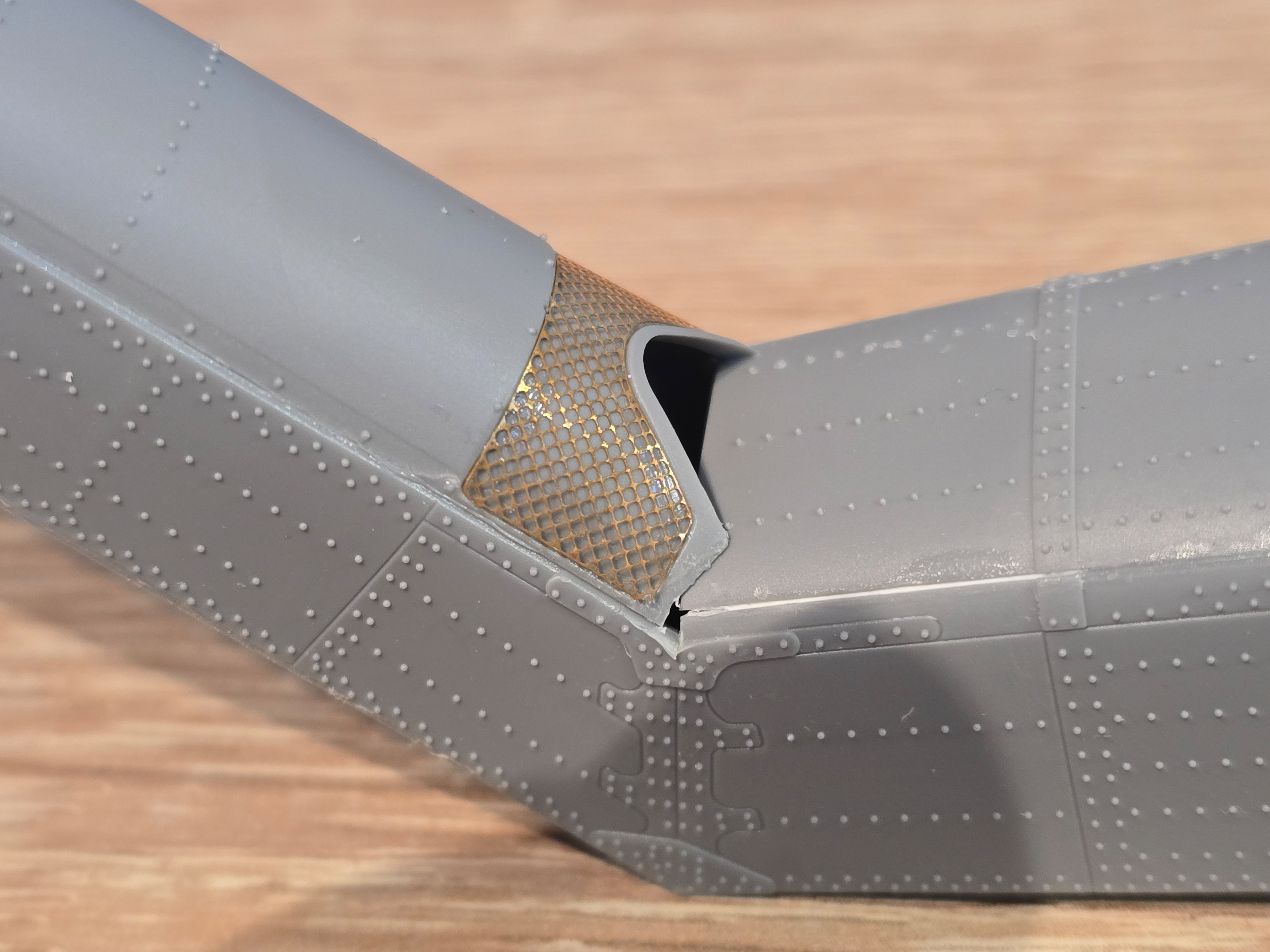 Dann würden beide Klarsichtteile für die Positionslampen von unten mit silber bemalt, eingeklebt und mit Tamiya Clear Red gepinselt.