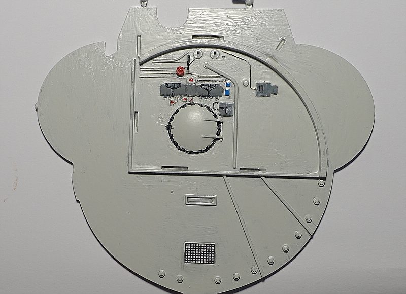 So hier mal das Kugelschott von der Zentrale von u-552. Die dünnen Stromleitungen zu den Schaltern habe ich mit einem dünnen Edding gezogen. Auch wieder schade der Schrank verschwindet nach dem Zusammenbau hinter einer Tür die leider nur in geschlossener Variante vorhanden ist. Blick in Richtung Zentrale Heck.