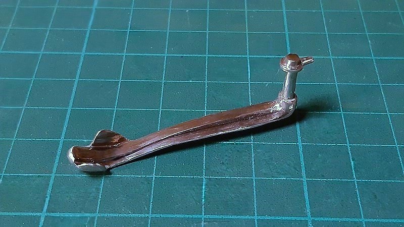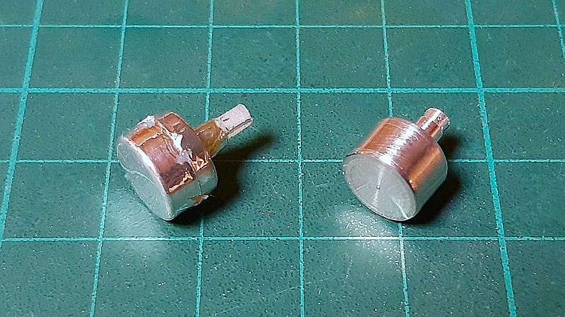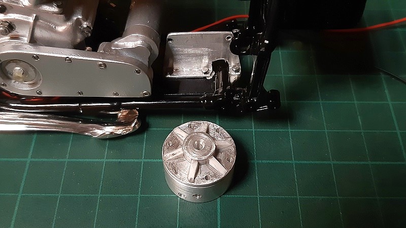 Ich drehte einen neuen aus Alu und setzte einen kleinen Alustreifen als Handknauf obendrauf, links Scratch, rechts Kit. Sodann konnte er seinen vorbestimmten Platz einnehmen.