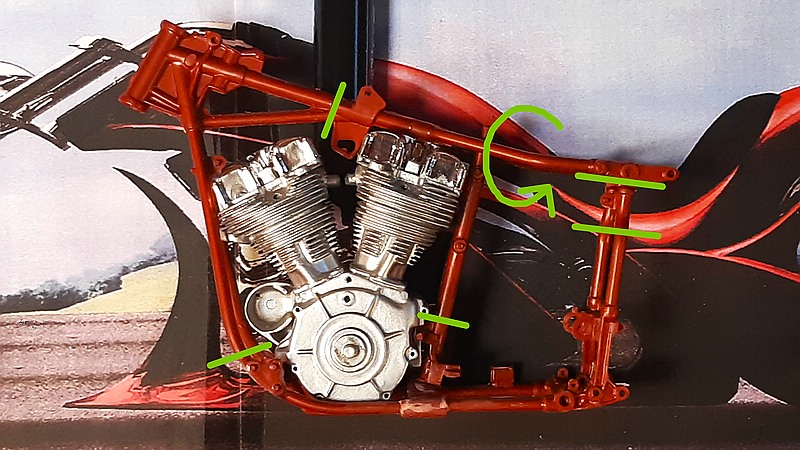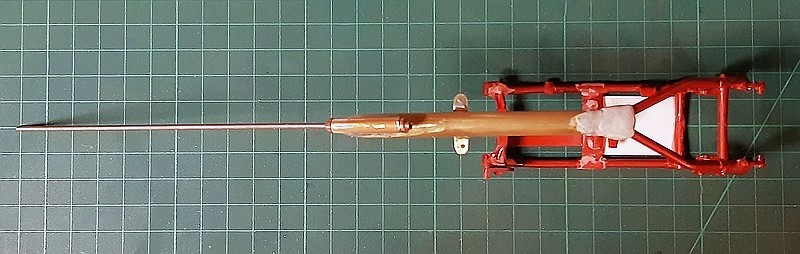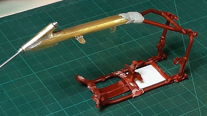 Der Übergang oben wurde in Form geschliffen, und der Lenkkopf erhielt die Auskragungen für die Lenkkopflager.Benutzerinformationen überspringen