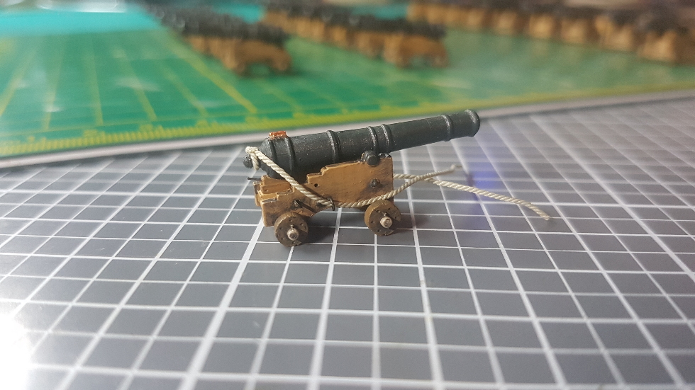 Jetzt geht es dann weiter mit Takelarbeiten an den 16 Kuhl-Kanonen, und dann ab an Deck damit.
