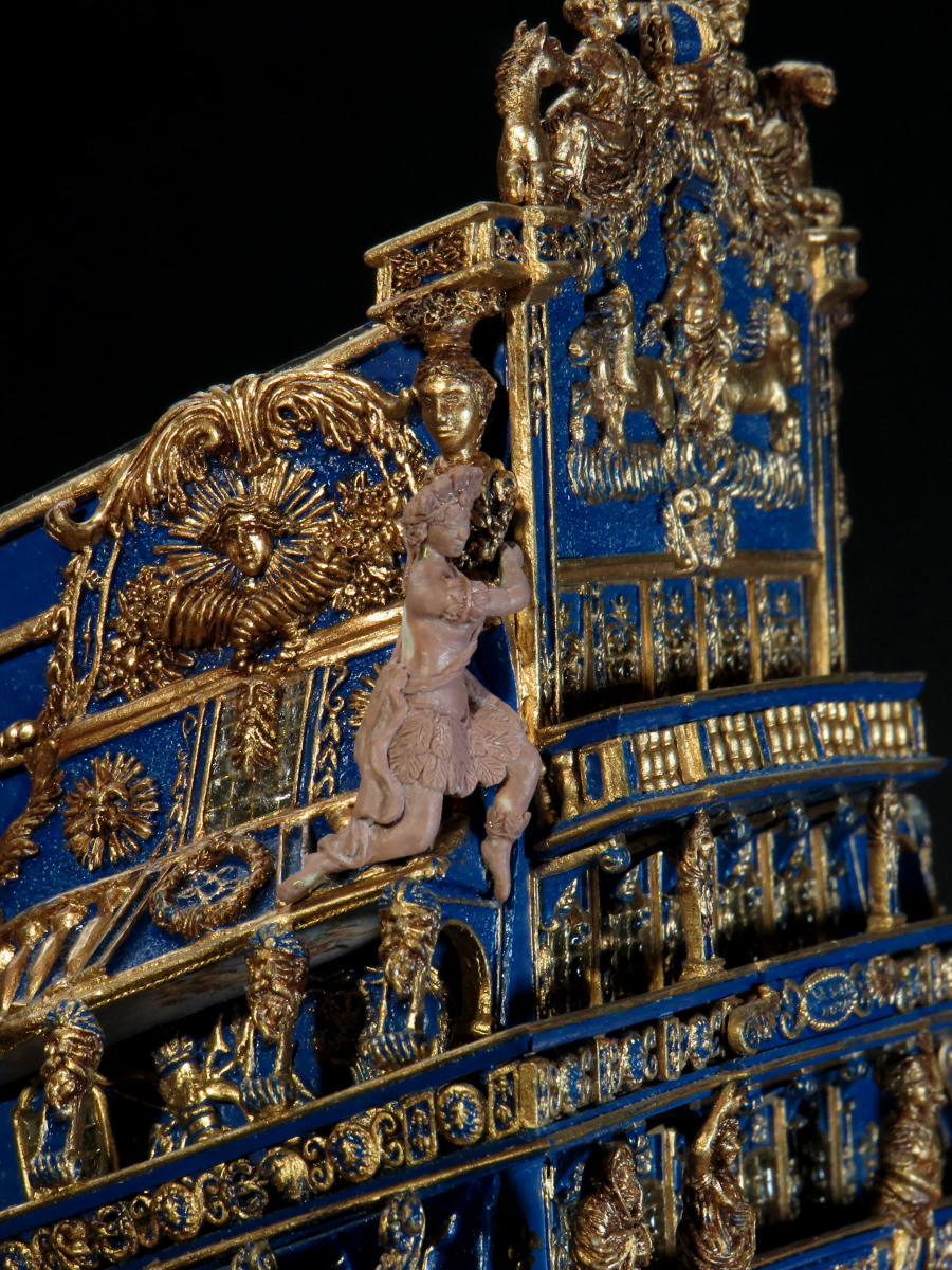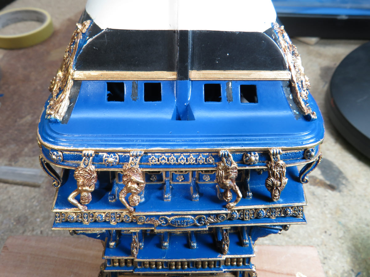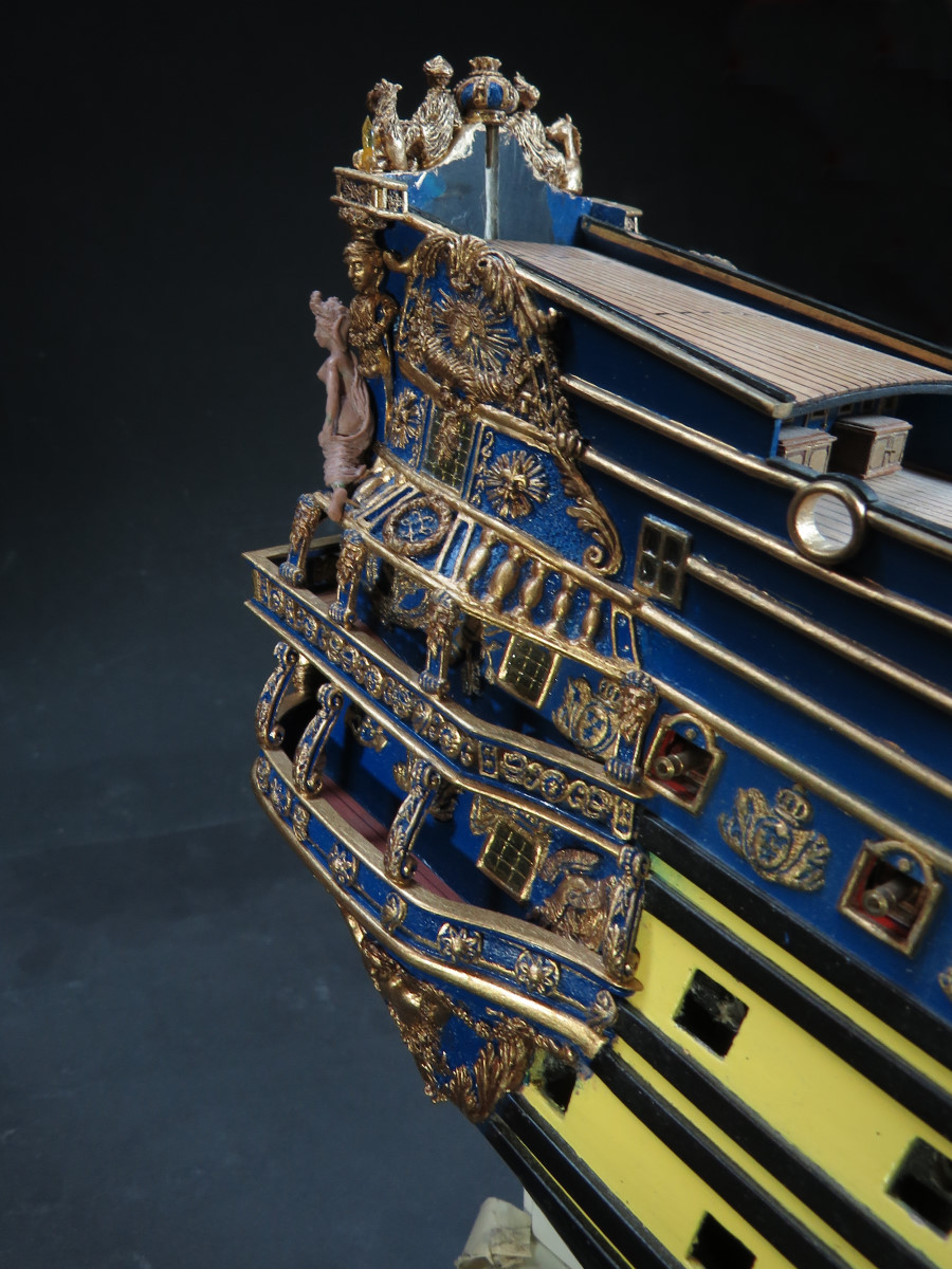Natürlich wäre das eine optisch saubere Lösung. Jede Stückpforte sauber ausfeilen. Einen entsprechenden Stückpfortendeckel einpassen und das 28 mal. Aber leider bin ich notorisch faul was solche Serienarbeiten angeht. Meine Devise ist: Mit möglichst viel Aufwand möglichst wenig Wirkung zu erzielen...oder wars andersrum