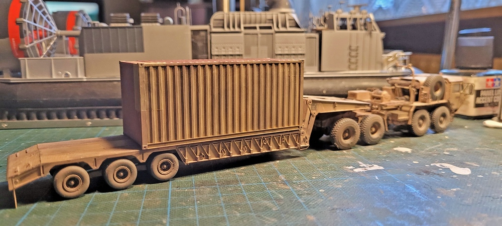 Könnte etwas zu viel sein, aber erst mal mach ich so weiter, gesichert ist es noch nicht, da mein matter Klarlack auch erst im Laufe der nächsten Woche bei mir eintrifft, zusammen mit einem Schützenpanzer M2/M3 Bradley, der aber nicht gebaut wird, da brauche ich nur Teile für ein anderes Projekt, das M270 MRLS. Was auch noch eine gute Ladung für das LCAC abgeben würde..