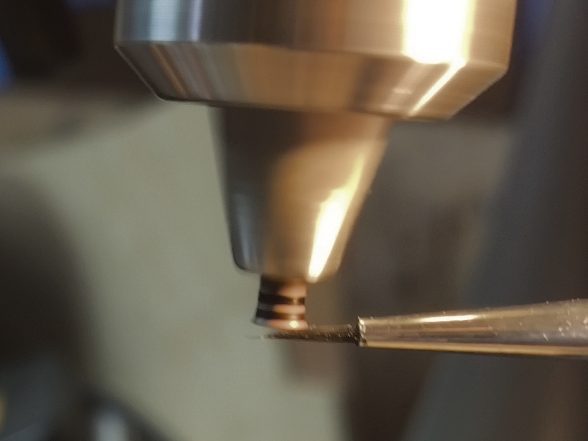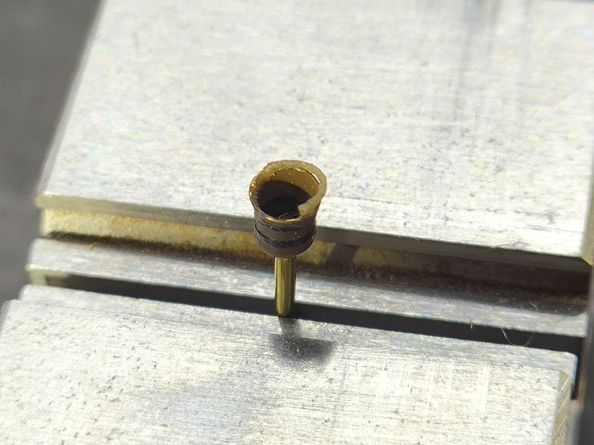...in das ein Stiel aus einem 0,7mm Messingdraht kam...