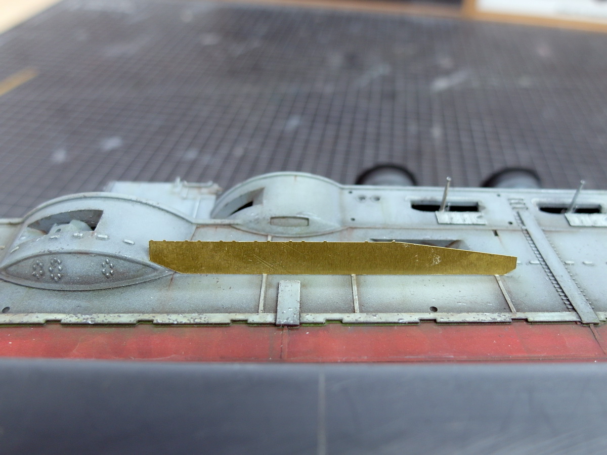 Moment dacht ich, das habe ich doch auch am Rumpf gemacht. Und dort werden doch Auflagen für die Torpedonetze direkt an dem Rumpf angebracht.
