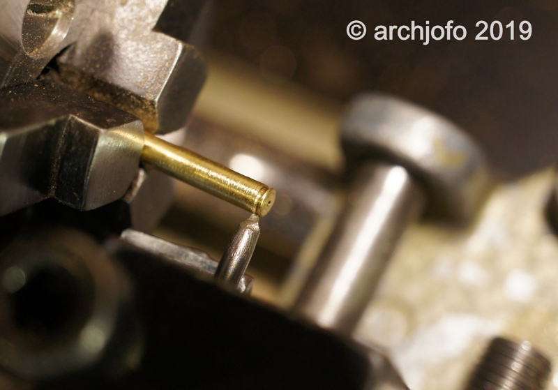 Zum Drehen der Scheiben ø 3 mm aus Messing fertigte ich mir aus dem Schaft eines abgebrochenen Bohrers ein Minidreheisen.