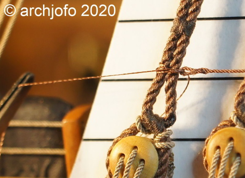 Eine beeindruckend präszise Ausführung, da ja bekantlich die Webleinen manchmal die Eigenheit haben, nach oben "auszubeulen".
