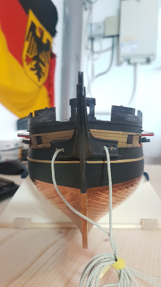 Guter Ansatz, kann man so machen. Damit entbindest Du Dich jedweder Notwendigkeit 100% sein zu müssen und man kann nicht wirklich opponieren. Völlig i.O.. Es ist Modellbau - und da gilt zuallererst der Spaß des Modellbauers selbst als Masstab!Und warum wieder als englische Prise? Naja, wenn ich die USS United States als USS United States baue, muss ich sie als USS United States bauen, weil sie genau so ausgesehen hat. Wenn ich sie hingegen als HMS Monarchy baue, dann habe ich ein wenig "künstlerische Freiheit" und kann sie so bauen, wie sie ausgesehen haben könnte. Und überhaupt, Biene Maja ist schöner als Schwarz-Weiß