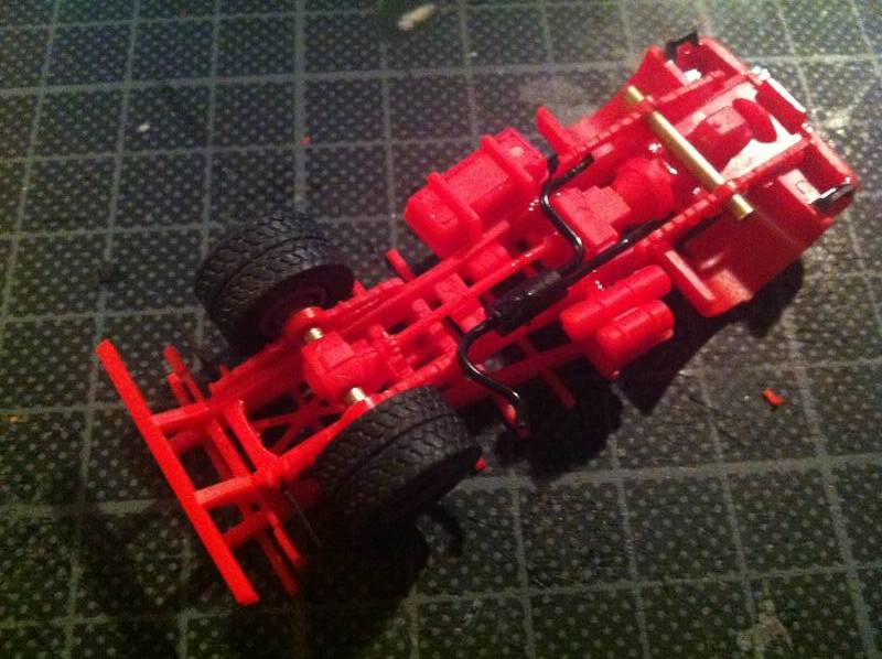 Dann gehts mal weiter, dass Fahrgestell vom Auflieger habe ich gekürzt, die vordere Achse habe ich wie beim Vorbild nach vorne