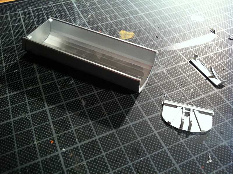 An der Mulde musste ich so einiges ändern damit sie so aussieht wie das orginal, die Vorderwand wurde komplett entfernt und durch eine