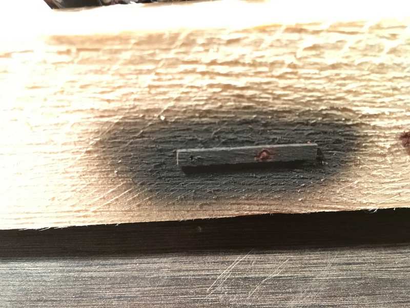Ich habe mich dann dafür entschieden Stecknadeln zu köpfen und diese als Zapfen zu nutzen um Nägel nachzubilden bzw. verstärkte Metallzapfen.