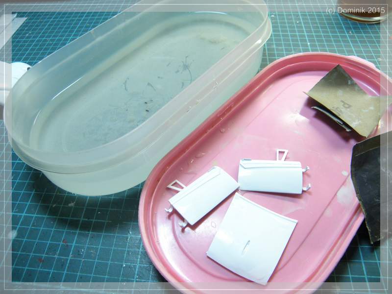 Nachdem der Lack durchgetrocknet ist, habe ich die Anbauteile mit 1000er naß geschliffen...