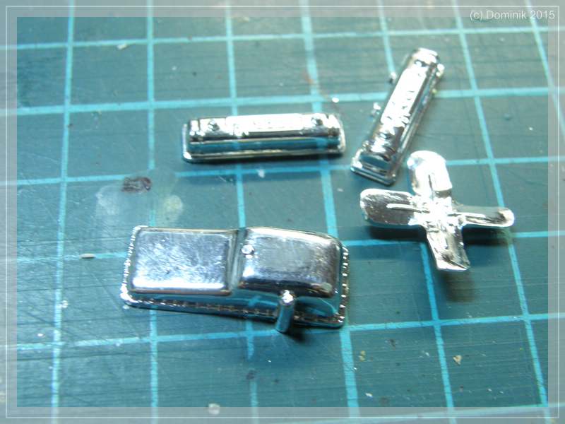 Also gut. Die Teile hab ich dann verklebt. Wie oben zu sehen, entferne ich dabei die Lackschicht vorher. Wie die Maschine nun aussieht, gibts im nächten Update, wenn die Pinsel geschwungen wurden ;)