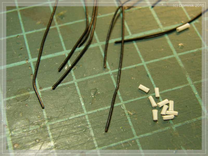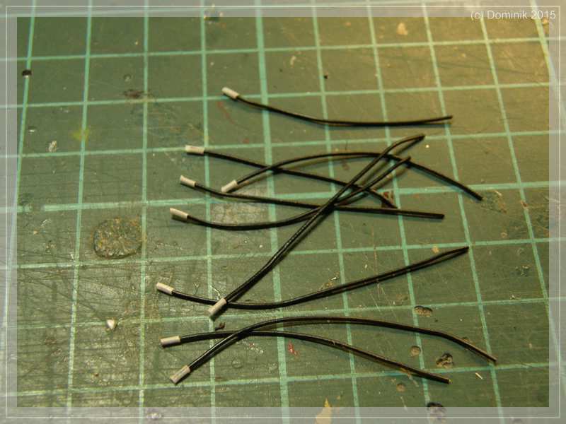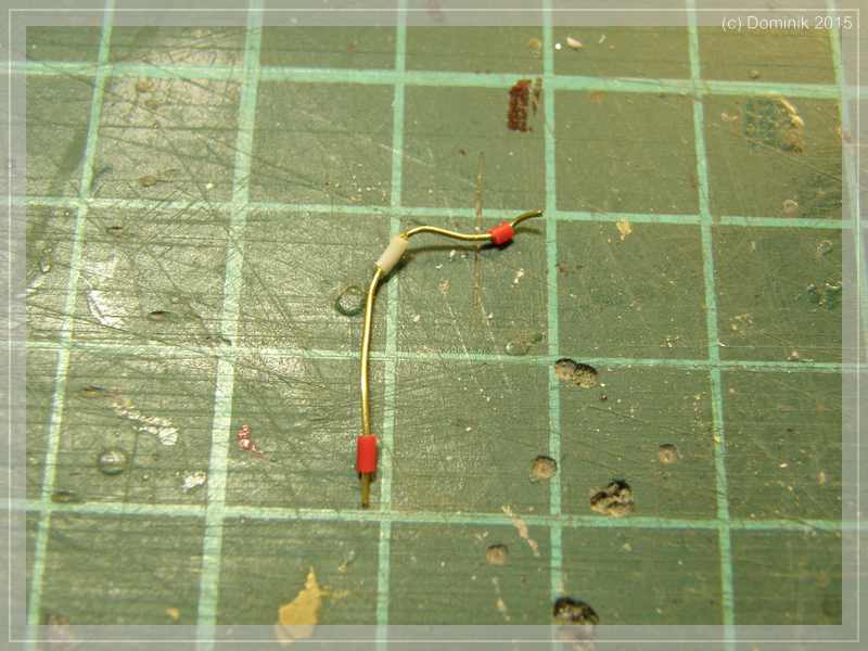 Dazu ein 0,4er Draht genommen, zwei Kabelisolierungen (rot) und ein Stückchen gezogenes Wattestäbchen.