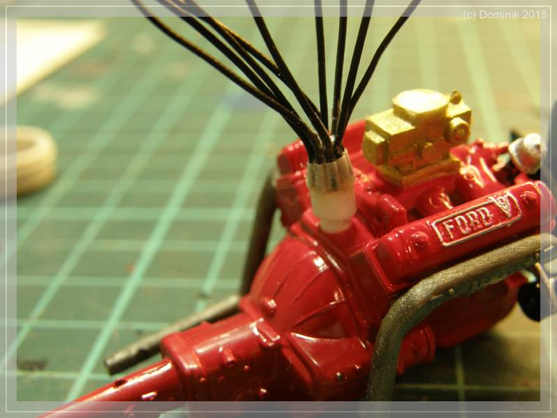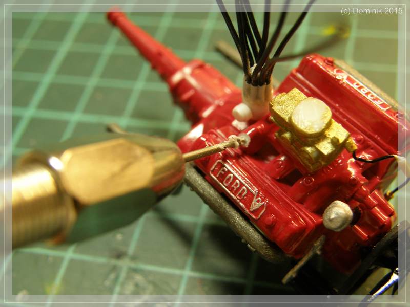 Getrocknet, kamen die Bauteile an ihren Platz und ich habe mit 0,4er Bohrer ein Paar Zündkerzenlöcher...