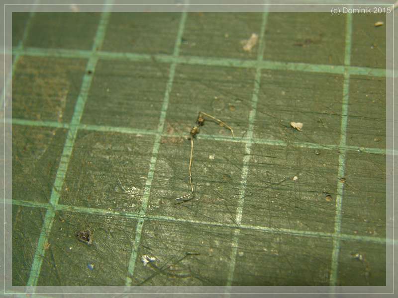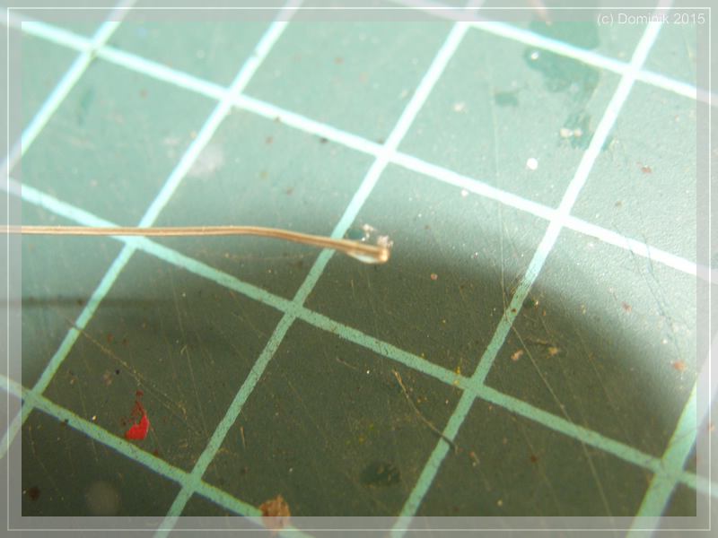 ...einen Klecks auf meine Unterlage und einen anderen 0,4er Draht eingetaucht...