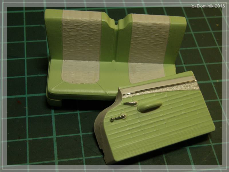 Die Sitze, Türverkleidungen und die Inneraumwanne haben danach eine Schicht matten Klarlack bekommen.