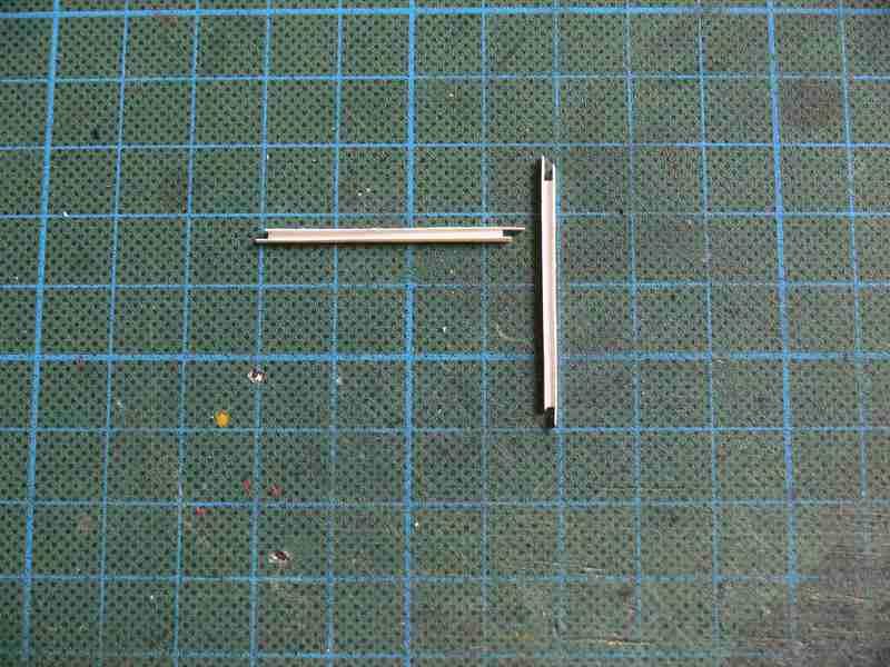 Als Halterungen wollte ich kleine U-Profile nehmen, nur habe ich keine mehr da, somit habe ich mir die aus 0,5 und 0,13mm Sheetresten auch selber gemacht. Die wurden dann auf die entsprechende Länge gekürzt, noch ein paar Schraubenkopf Imitationen dazu und am Tank angeklebt.