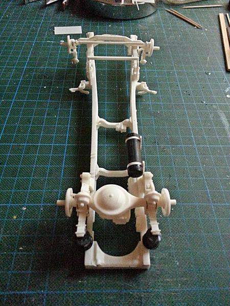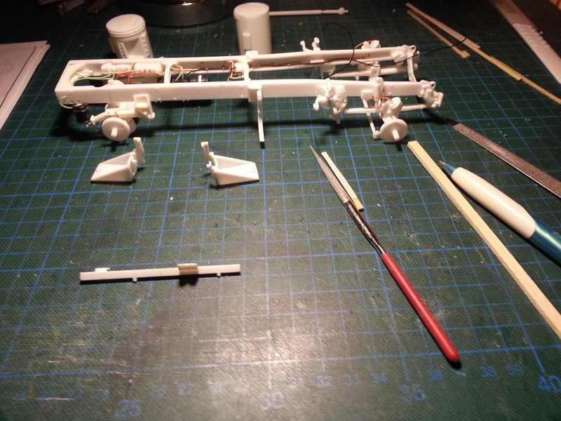 Dann wurde das alles am Fahrgestell angebracht, dazu kamen dann noch ein paar weitere Teile, wie die vorderen Kabinenhalterungen, mit integrierten Tankhaltern.