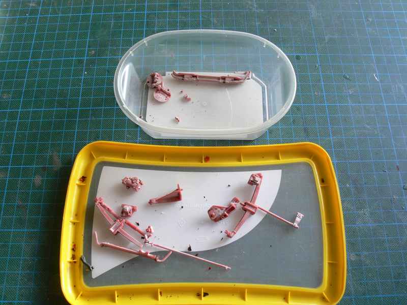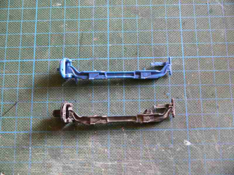 Nun waren die Halbfedern an der Reihe, auch hier ist eine Hälfte, am Rahmen, angespritzt und die andere Hälfte muss angeklebt werden.