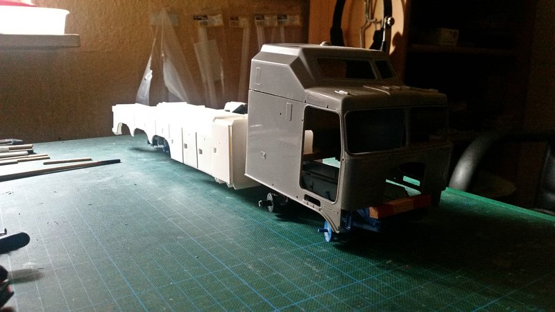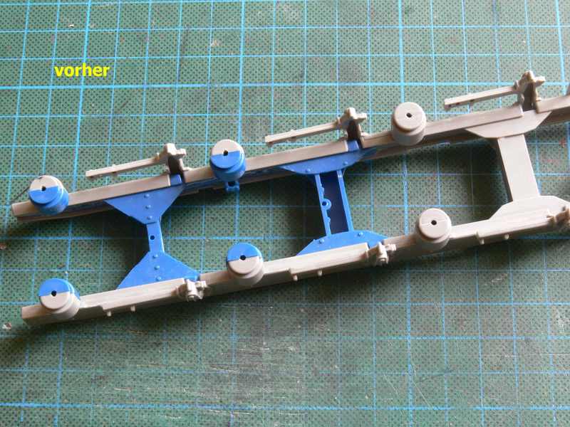 Bei mir stockt es gerade etwas, da ich noch auf das Dowanol warte und ich möchte erst das, mit den beiden Vorderachsen gelöst haben, bevor ich am Fahrgestell weiter mache.