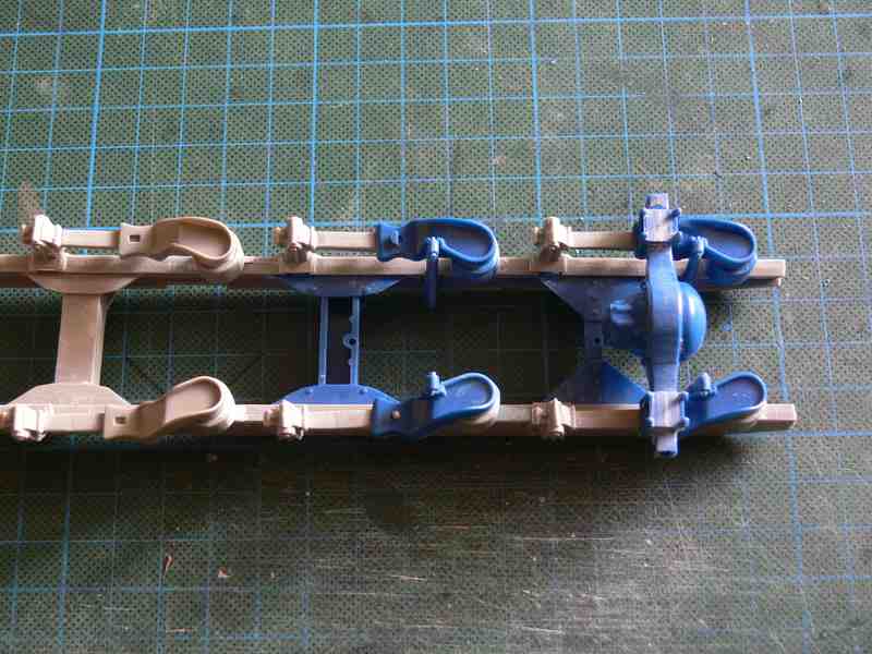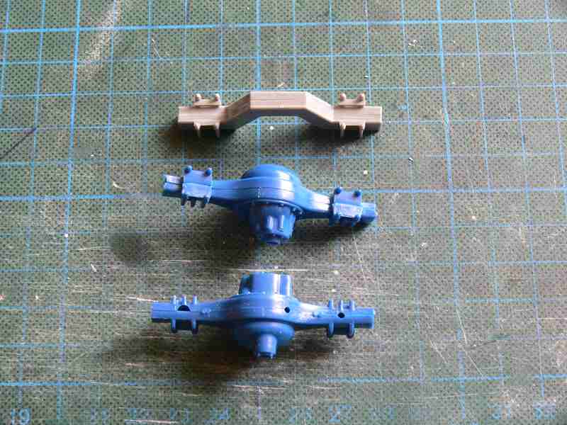Zunächst hatte ich ja die Vorderachsteile, vom original Bausatz, versäubert, zusammen gebaut und am Fahrgestell angebracht.