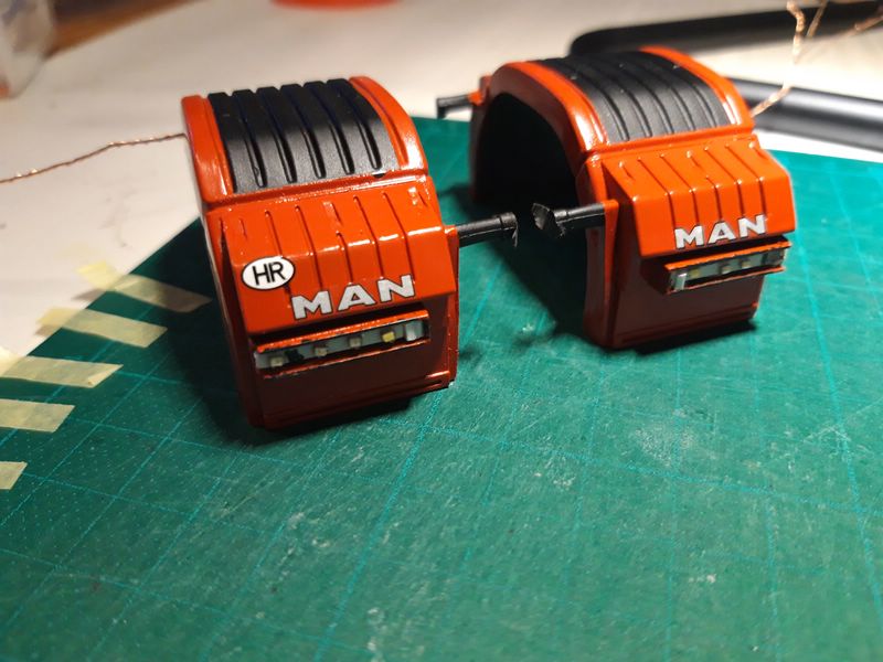 Entsprechend zugeschnitten und mit einem „Lichtkörper“ aus 0,5 mm Kunststoff-Resten versehen, ergaben sich dann „brauchbare Scheinwerfer“ …