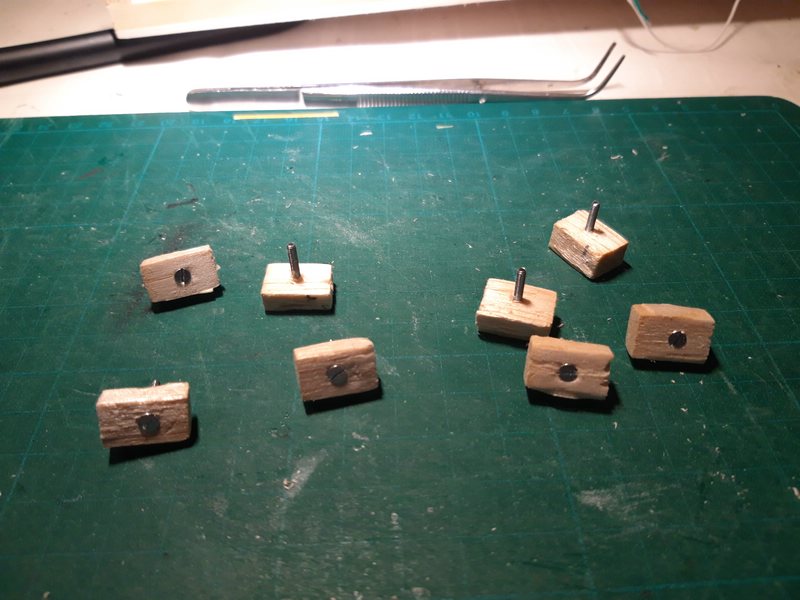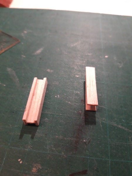 In diesem Fall habe ich mit 5x5-Kiefernleisten „freihand“ die Form nach und nach geprägt, für meine 1:87-Modelle habe ich mit eine Schablone gemacht, wer’s in 1:24 korrekt haben will, schaue auf