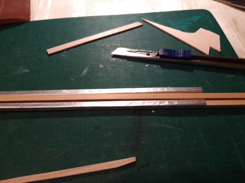 … zuerst die Pfosten aus Balsaholz (1,5 mm) zugeschnitten und verklebt …
