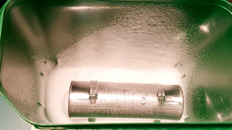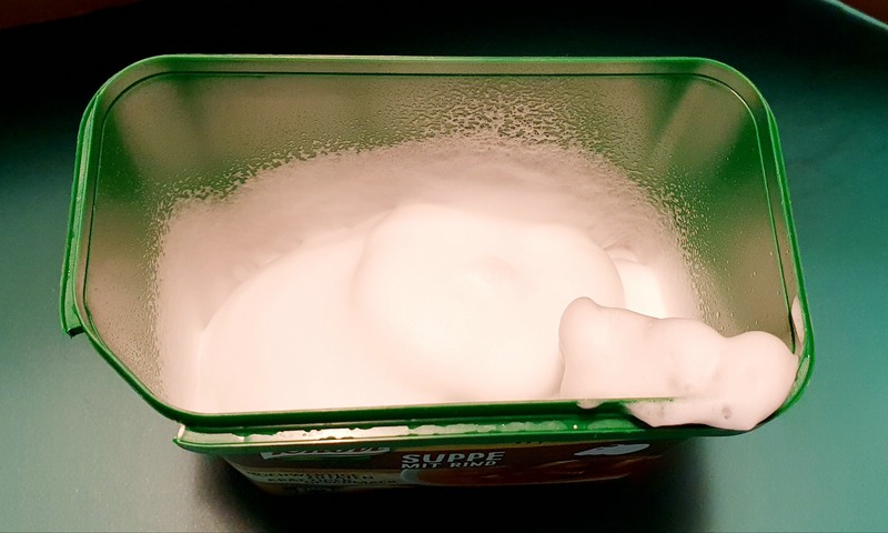 Ich hab 2 Kartonagen drunter gestellt weil ich dachte, das Spray entwickelt evtl. Gase und es sprengt mir die Suppenbox