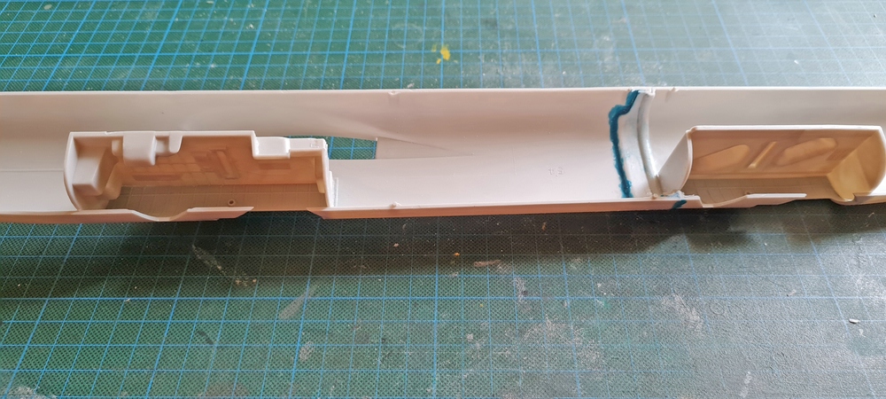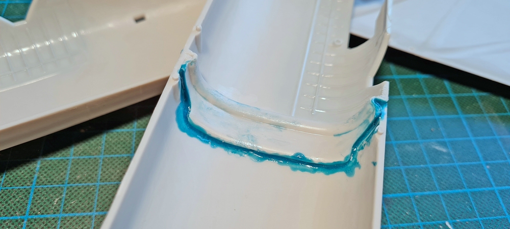 Damit ich dann diese Stellen im Rumpf behandeln kann, hier klafft dann doch ein zu großer Spalt.