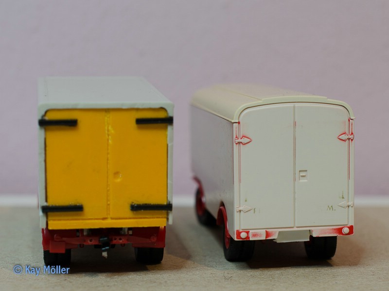 Sehr schöne Modelle. Ich bewundere den Detailreichtum und stelle fest, die LKWs meiner Sammlung können da null mithalten. Ich schreibe gerade ein Manuskript über einen Kik-LKW und moniere die um 1-2 mm zu lange Kupplung, dann sehe ich Eure Modelle im Vergleich und habe das Gefühl, dass ich Glitzersteine betrachte, während ihr schon mit Edelsteinen spielt
