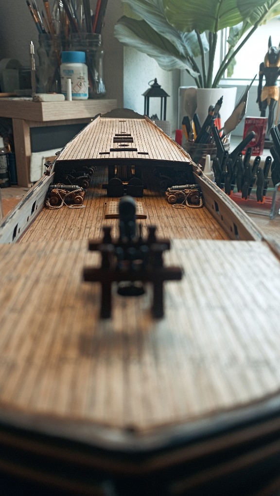 Morgen mache ich den Spakenring fertig und passe alles an. Ob ich das Spill blank lasse oder zumindest die Kopfabdeckung schwarz mache weiß ich noch nicht. Mir würde es als komplettes Blankholz-spill gefallen, allerdings weiß ich nicht ob die Kopfabdeckung tatsächlich immer schwarz war. Ich nehme mal an dass diese damals aus Blech oder ähnliches war und wahrscheinlich war sie wirklich schwarz. Mal sehen....